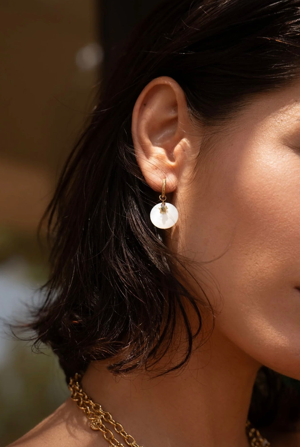 Aroha Mother-of-Pearl beige Earring Gold