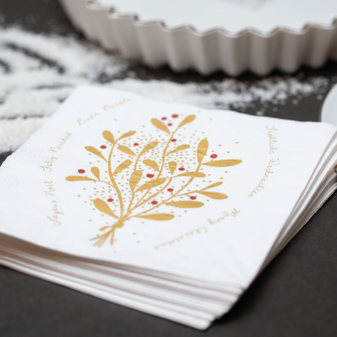 Paper Napkin “Joyeux Noël Mistletoe” White and gold